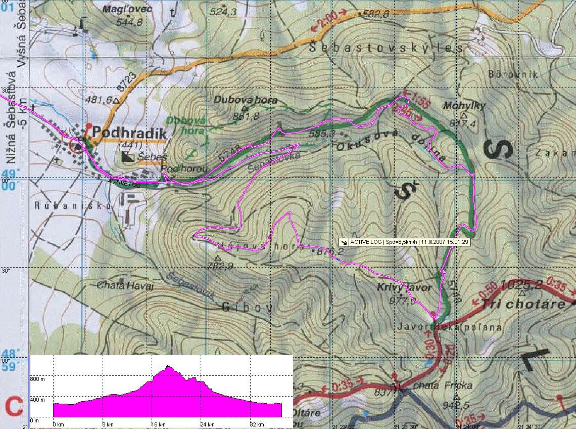 Ako ste šli? Najprv po zelenej značke a potom dole alebo opačne? Podľa profilu asi skôr opačne. Musela to byt sranda najmä v tých vyšších výškach po snehu.