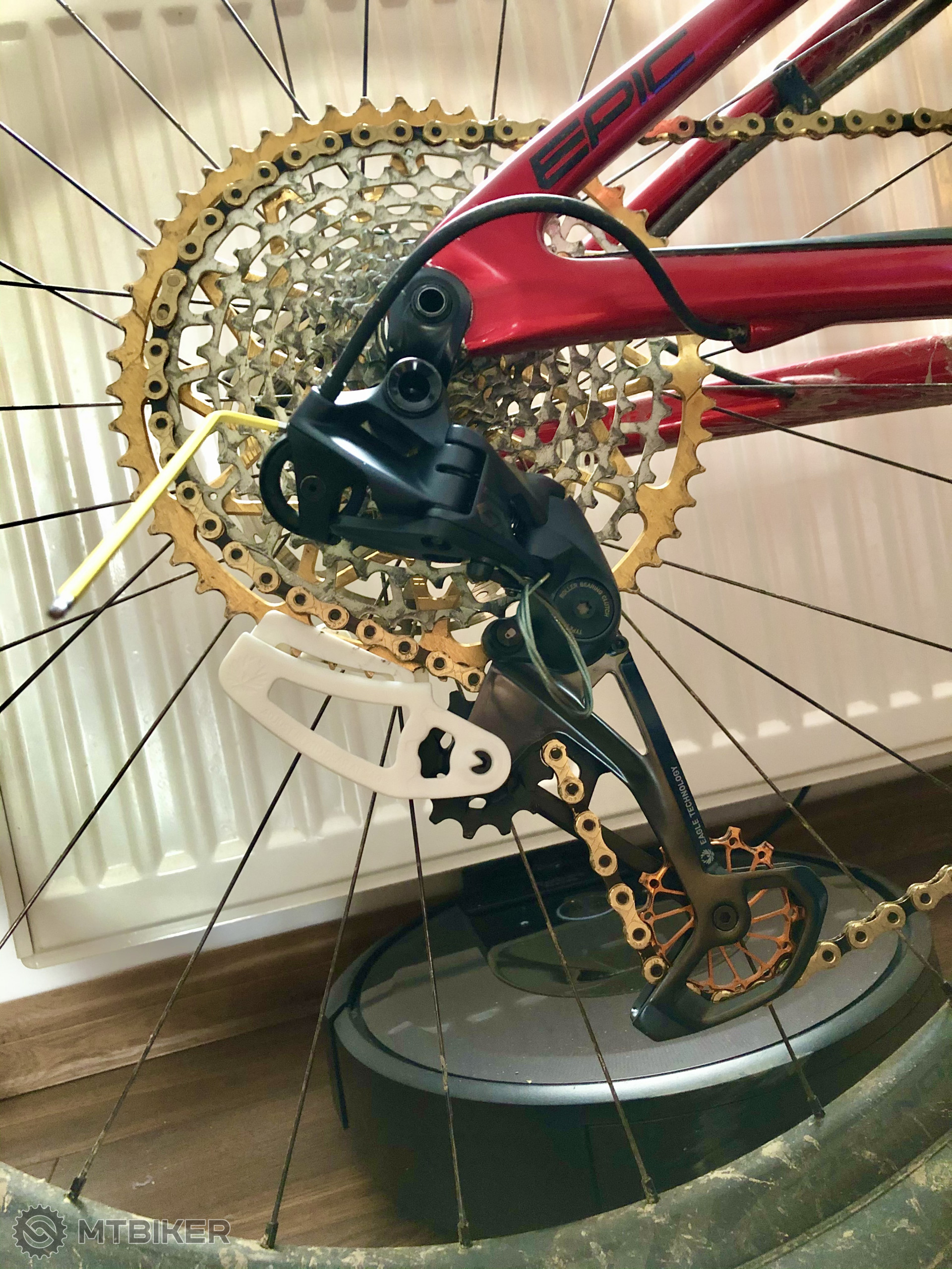 Takze po kúpe novej prehadzky sram gx 1x12 (určené pre 10-52z) konečne všetko Tip-Top sadlo to ale až po nastavení vzdialenosti ramienka od kazety pomocou šablóny a reťaz je skrátená podľa nastavenia od kazety garbarug ??⚙️?