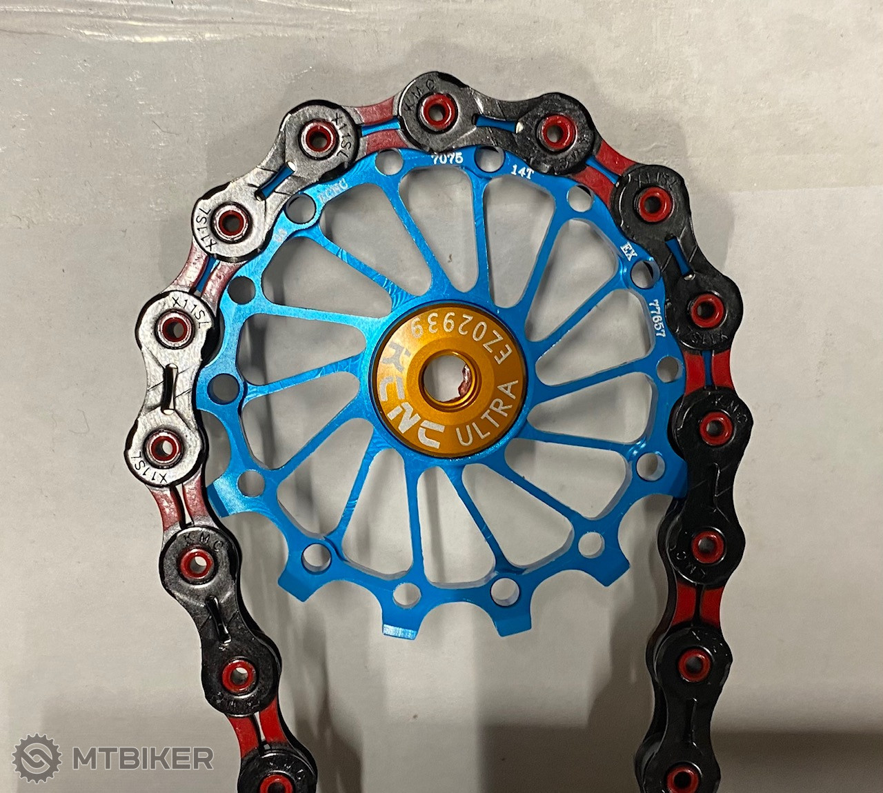 Mam tu tu istu kladku KCNC 14z Narrow/Wide a "poruke" len KMC retaze a krasne a lahko zapadaju aj 11 rychlostna (cervena) aj 12 rychlostna (modra), cize to tez vidim na problem kompatibility so Shimano 12Speed retazou.