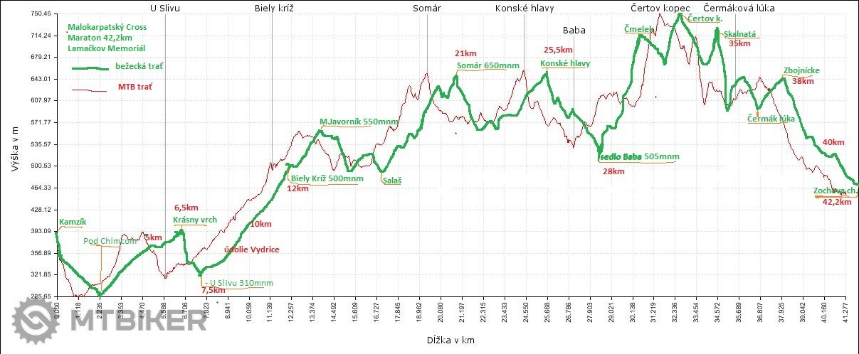 Trať: 42,2 km (Kamzík - Zochova chata)