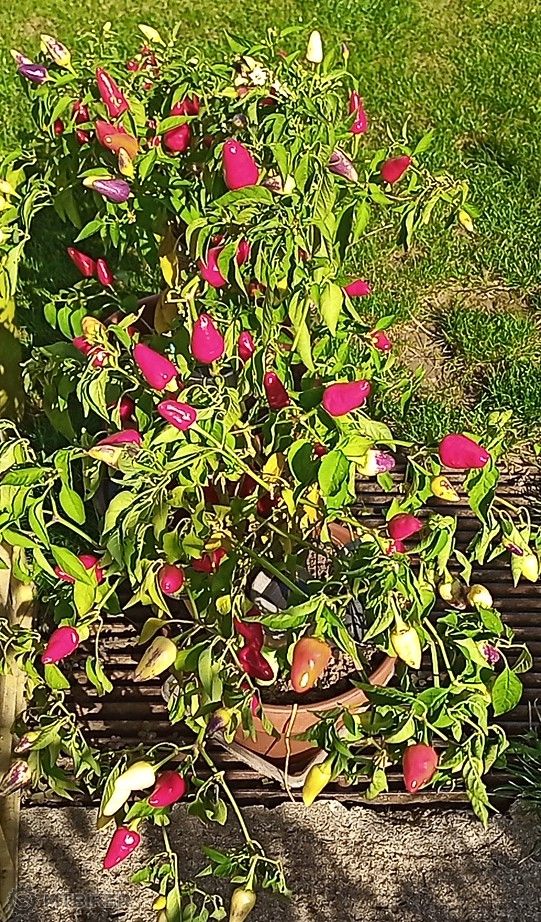 Prikladám teda na úvod pár fotiek z nášho pestovania z posledných pár rokov. Okrem priamej konzumácie papričky sušíme a drvíme, tento rok sme skúšali prvý krát variť omáčku (jedna várka ochutená slivkami, jedna marhuľami), používam ako dresing.