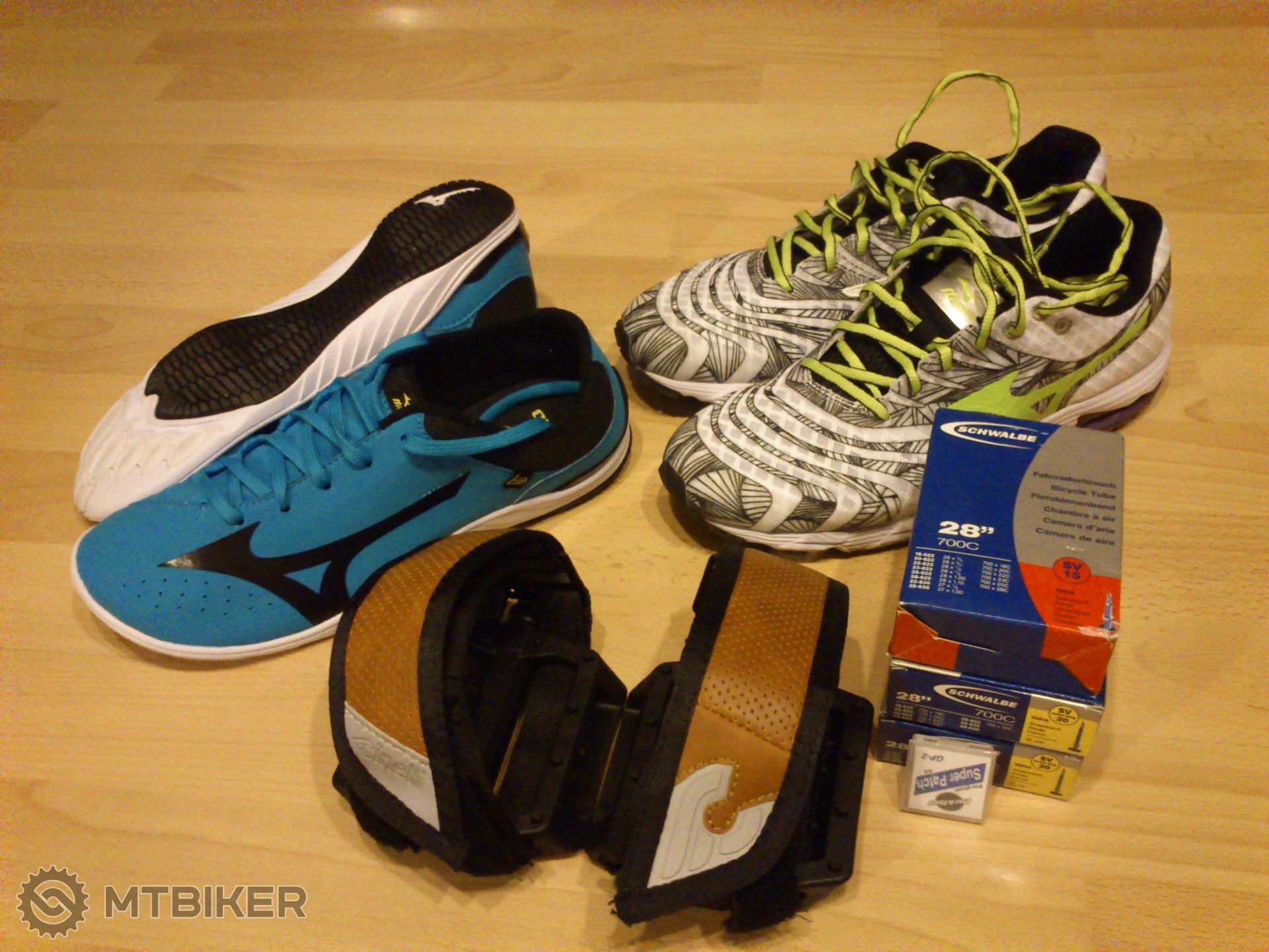 Papucky na chodenie (Mizuno Be 2; 2x160g), preteky (Mizuno Wave Sayonara; 2x226g), pedale do mesta (Kore Rivera Thermo + Cinelli Kink; 2x219g) a nove duse s fajnovym lepenim
