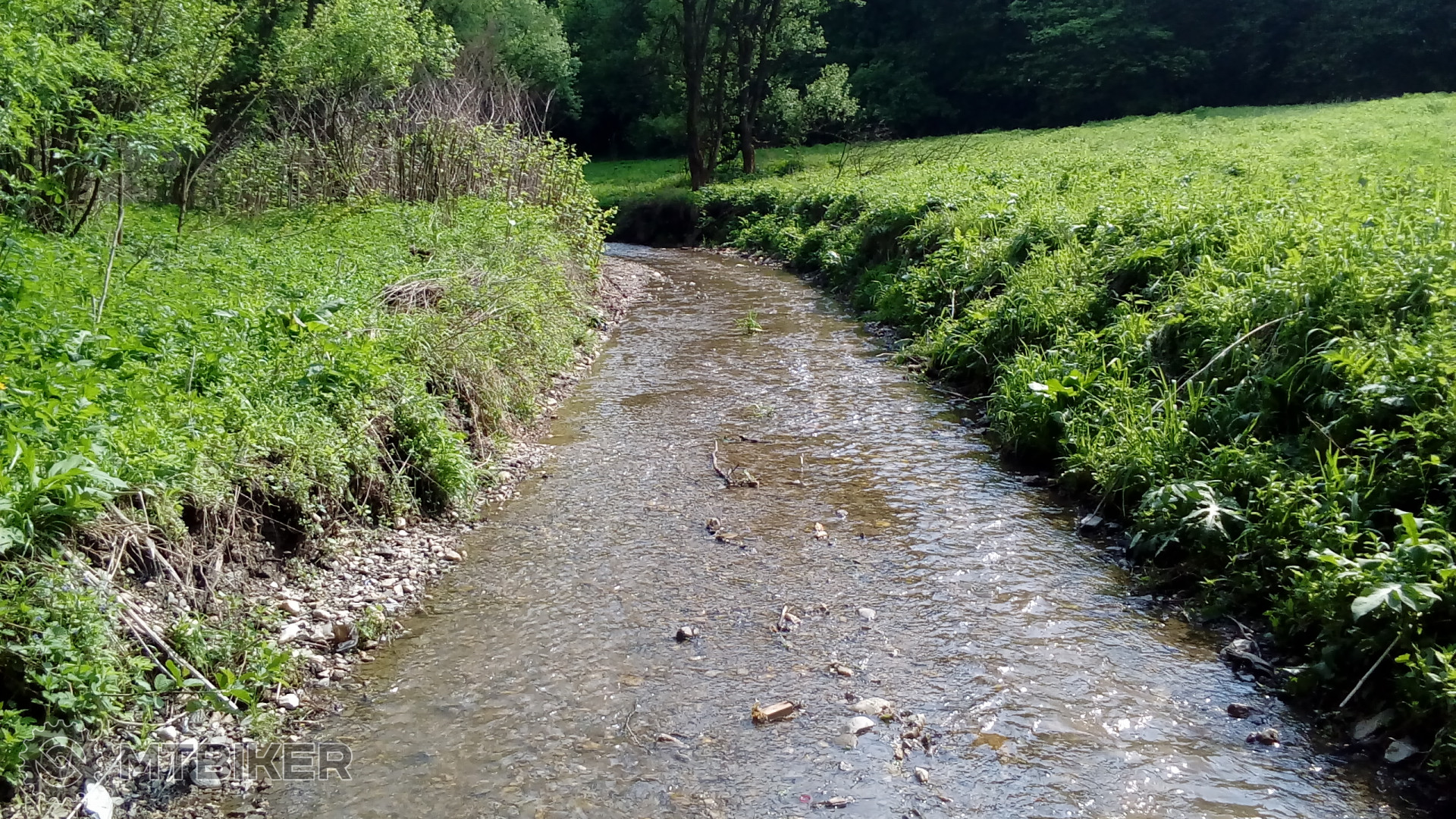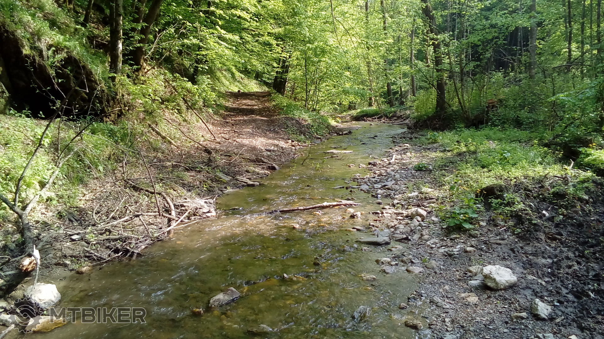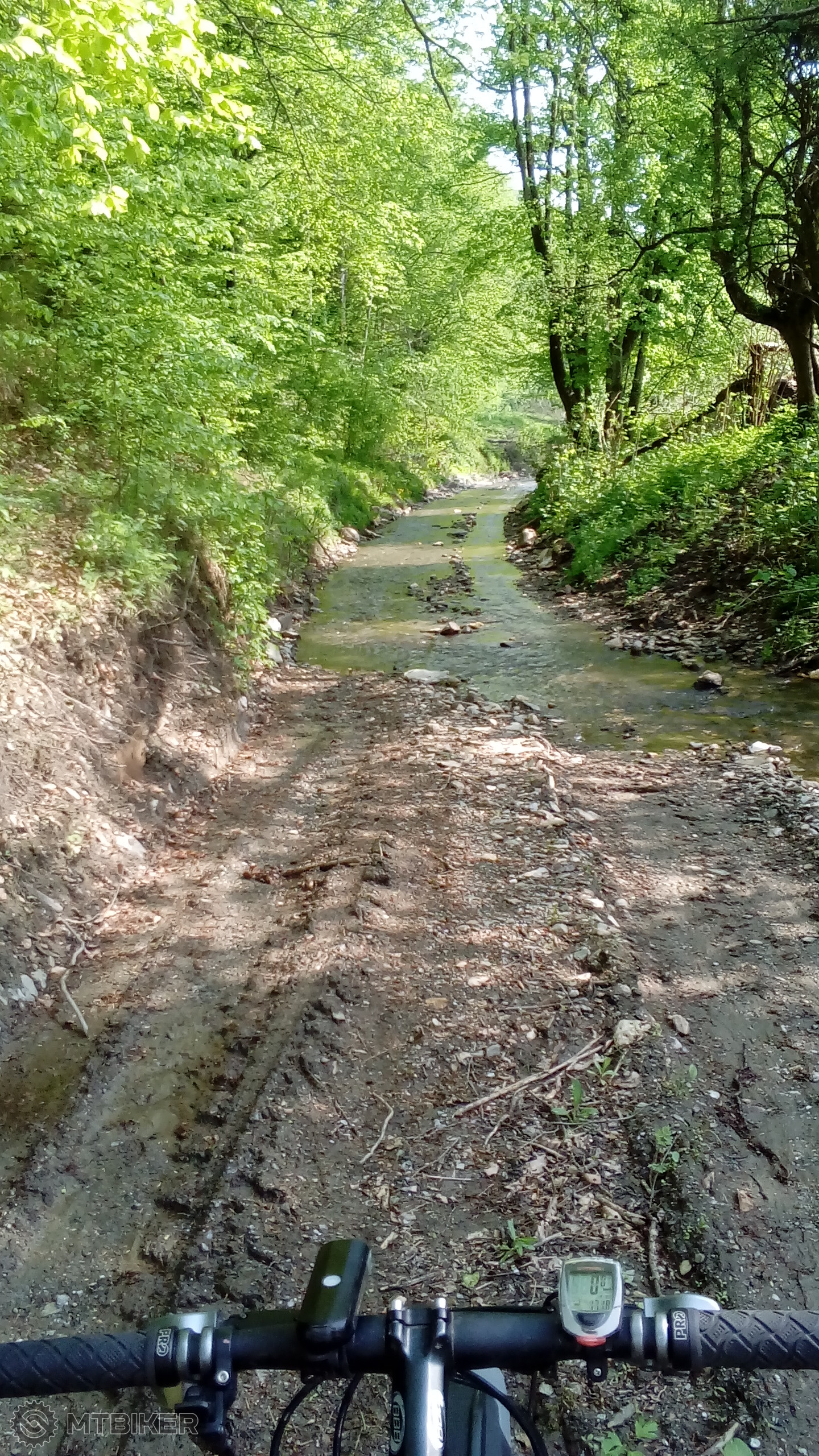 Gemer vždy prekvapí: medzi Turčokom a Nandražom je cesta zároveň korytom potoka. V dĺžke cca 1,5-2 km, s krátkymi prerušeniami. Nebolo to hlboké, max. 20 cm. Dalo sa to celé prejsť, záleží na technike jazdy. Vrchná časť úplne elegantná, v spodnej časti boli aj väčšie kamene. Občas som stratil balans a oprel sa nohou - našťastie ešte stále odolávam nášľapným pedálom a tretrám.