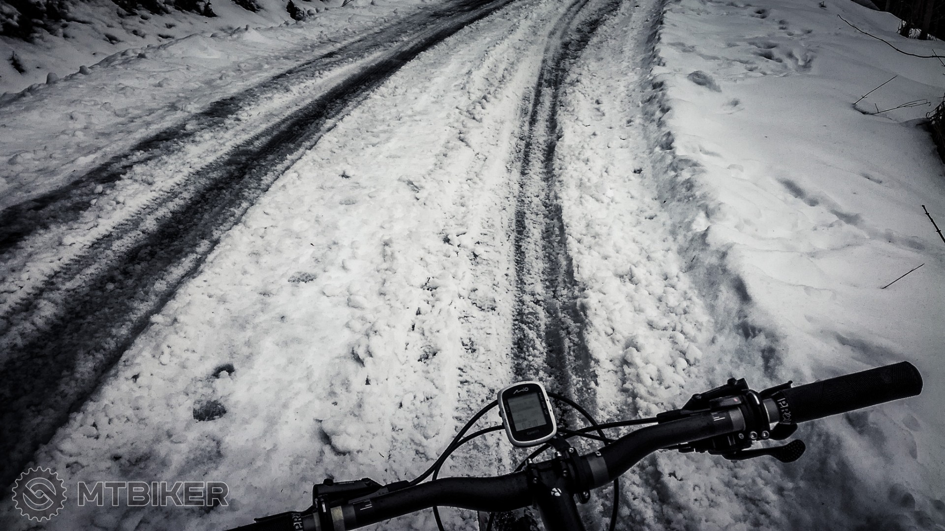 Juchuu, konecne mam aj ja cim prispiet. Siel som smer M. Hole ale podklad bol makky a rozbity, tak som si to musel vytlacit. Skoncil som pri dele. Cesta na dol bola zaujimava. Koleso sa miestami zabaralo, skoro cely cas som siel smykom. Clovek sa nauci technike v tejto prekliatej zime Takze fun factor na vysokej urovni. Pad ako zazrakom ziadny. Dopredu som nahodil Maxxis Wetscream a veru oplatilo sa. Na moje pocudovanie je plast na asfalte tichy a ani neprenasa vibracie do riaditok.
