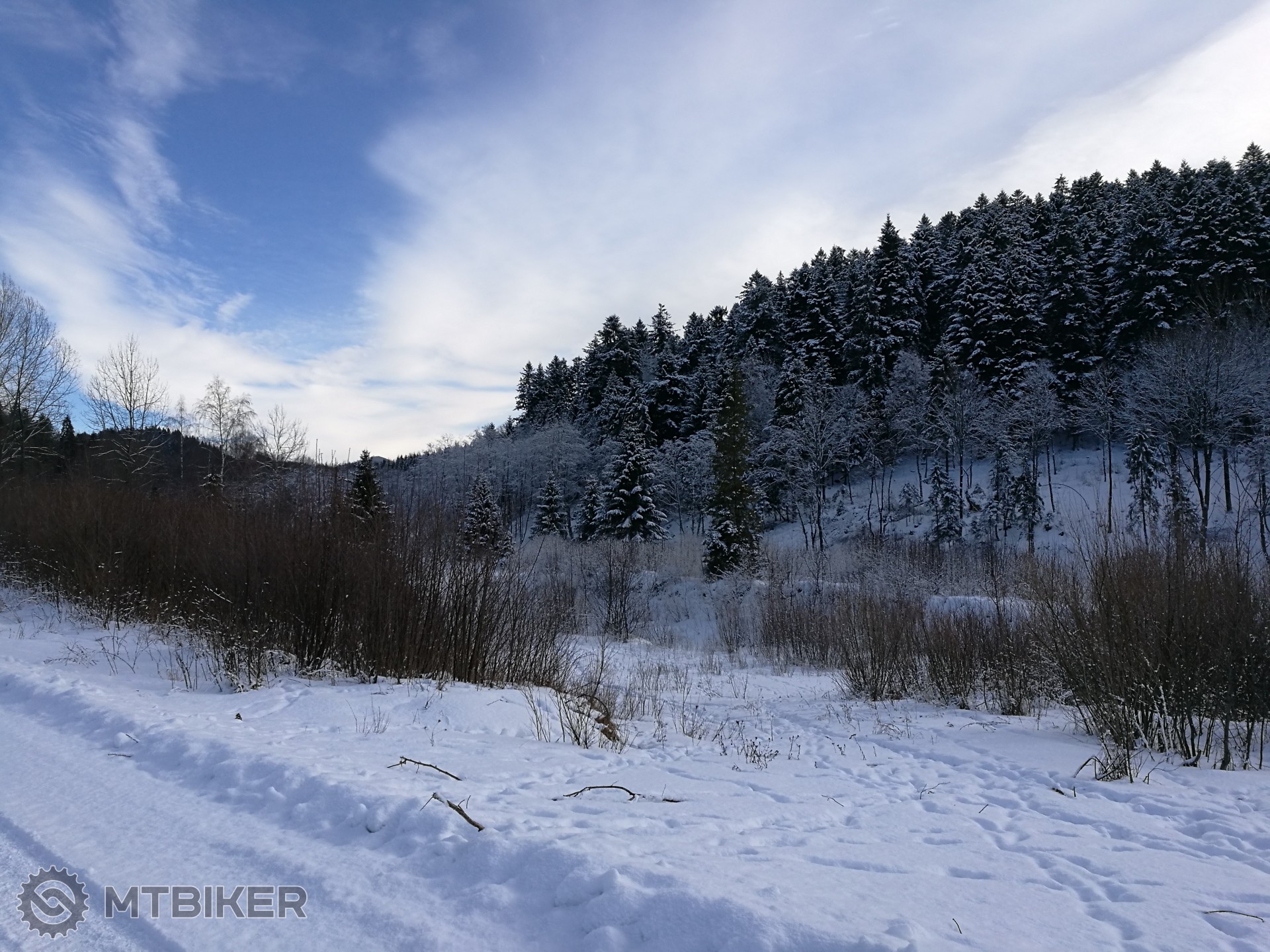 Dneska skoro po týždni znova na biku. Teplota už parádna od 2,5°C do 4,4°C Havranec - K.N.V. no hnusný ťažký premočený terén/sneh