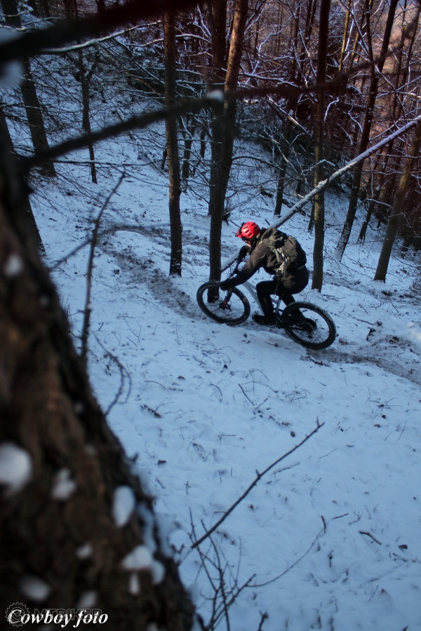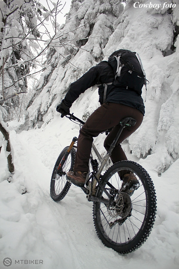 Veď jasné. Tie tlaky máš fajn, len do tých podmienok keby si vzadu dal 10psi a možno aj trochu menej, tak by to šlo o kus vyššie a s menšou námahou, ľahký prevod a pomaly z toho snehu odkusovať 😉😎 Na cestu dolu potom aj predok trochu spustiť.