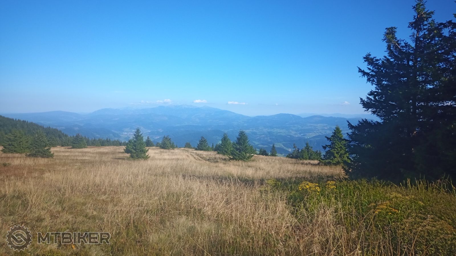 Je ráno 5.30 a ja opúšťam môj dočasný base camp vo Vrútkach a smerujem na Poprad. Za Ružomberkom sa začínajú črtať siluety Tatier. Slnko ešte nevyšlo nad obzor, ale ranné zore osvetľujú i ľahko rozoznateľný Kriváň, bohužiaľ ostatné vrcholky hôr sú pre mňa neznáme. Viem len, že sú to západné Tatry ? Cesta autom ubehla rýchlo a o 7.30 už sedím v Telgárte na bajku a začínam môj posledný výjazd tohto tripu. Z Telgártu začínam po hlavnej ceste, po pár km zastavujem a fotím si chalúpku, ktorú som v detstve videl nespočetne veľa krát, aj keď len v kreslenej podobe ? Po pár cvakoch pokračujem smer Šumiac a hore na Kráľovu hoľu (1946 mnm) - najvyššie položené miesto na Slovensku, kde sa môžete legálne dostať na bicykli. Kráľova hoľa patrí v mojom WISH liste na jedno z najvyšších miest. Krížna, Smrekovica, Martinky, to sú ciele, ktoré mám už odfajknuté a teraz smerujem na posledný veľký cieľ. Prevýšenie 1170m, z nejakých 780 mnm (u odbočky z cesty na Brezno) do výšky 1946 mnm, 2 hodiny neustále do kopca. Ako som neskôr zistil, tí najlepší to dali za 58 minút. Ja ale nejdem na čas. Nestretám žiadneho cyklistu, len v 1. tretine predbieham dvoch turistov a o niečo neskôr dve asi zberačky?, inak ani duše. Zastavujem sa na Chate pod Kráľovou hoľou, pivo ešte nemali narazené, tak som si dal aspoň fľaškovú colu. Zatiaľ, čo vypijem colu za 3€, vypočujem si rozhovor turistu s chatármi o medveďoch. Ako vždy, nezdržujem sa dlho a idem ďalej. Čím vyššie sa dostávam, tým sú výhľady krajšie, väčšie, epickejšie. Onedlho sa už aj Tatry ukazujú v doslova plnej kráse. Neustále zastavujem a fotím. Po 10. sa dostávam na vrchol Kráľovej hole. Nie som tu sám, sú tu už dvaja cyklisti, inak nikto. Aspoň mi má kto urobiť vrcholovú foto. Po pár minutách odchádzajú a ja mám celú Kráľovku sám pre seba. Aj som si zaspieval z plných pľúc :" Na Kráľovej holi, stojí strom zelený ...". Ak ste tu ešte nikdy neboli, tak žiadny strom, tobôž zelený tu nestojí ... Po 10 minutách čírej samoty na vrchole Slovenska sa začínajú zjavovať ďalší cyklisti, tak opúšťam toto miesto. Po ceste dolu stretám veľa cyklistov (dobre som urobil, že som začínal tak skoro, mal som Kráľovku pre seba) smerujúcich hore. Samozrejme v drvivej väčšine na ebicykloch. Len taký detail, čo som si všimol: viete ako poznáte, že ide niekto na maximálnu pomoc pohonu? Že na tom sedí i v 12% stúpaní ako nejaká babka, keď ide po rovine do obchodu pre maslo?Na chate pod Kráľovou sa už na zaslúžené pivko nezastavujem, beztoho tam už bolo dosť ľudí a idem ďalej. Pri smerovníku Havranie opúšťam cestu, po ktorej som prišiel a idem po zelenom céčku. Na lesnej ceste nikoho nestretám, všetci idú na KH zo Šumiacu. Aj keď som všimol, pár tých, oných ?, veľmi ma to neznervózňuje. Za tie 3 dni som si už celkom zvykol sa pohybovať v podobných prostrediach. Ale i tak si v neprehľadných lesných zákrutách, niečo hlasité zahulákam. Veď, čo keby predsa ... A tak sa cez Štráfy, Zuber dostávam až do Pustého Poľa. A odtiaľ už len po hlavnej ceste naspäť. Ešte sa zastavujem pri Chmarošskom viadukte, prameni Hronu a končím svoj 3dňový trip pri aute na parkovisku v Telgárte. Dnes už len tak odpočinkovo 47 km, 1366 vm a 5 hod.