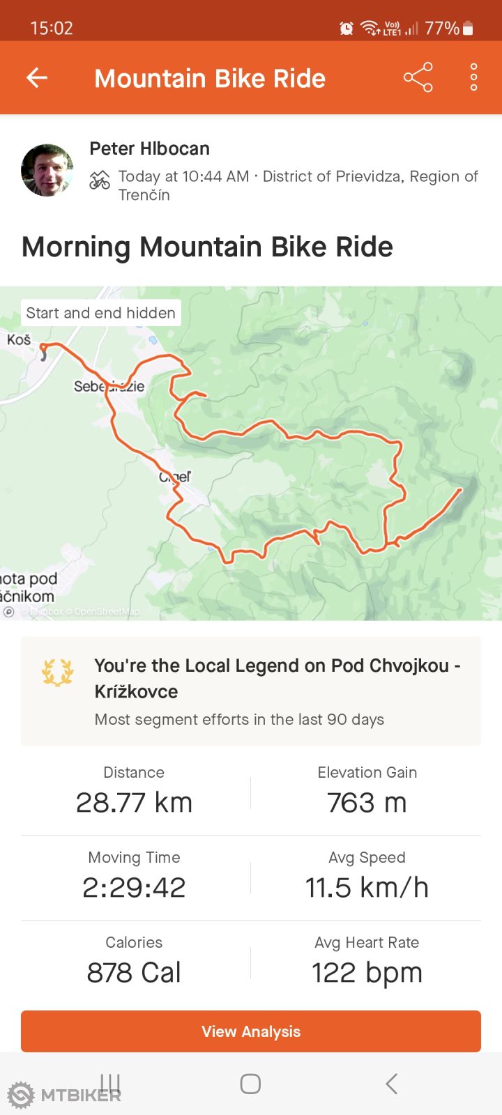 Po 2,5 hodinovom presune autom parkujem na Bumbálke. Prvých 15 km za 45 minút, hm to nie jé zlé. Až na tú stratu 300 výškových ? Lesnými cestami sa dostávam sa do obce Bílá. Zastavujem pri miestnom kostole sv. Bedřicha a trochu sa zohrievam na slnku. Mám husiu kožu, ako mi je zima na ruky ?, teplomer ukazuje 8°C a ja mám na sebe len krátke perfetto. Stačí pár minút na slnku a teplota pomaly stúpa. Pokračujem ďalej asfaltkou na Staré Hámry. Tam odbočujem k pomníku Maryčky Magdónovy - pripomienky na slávnu báseň od Petra Bezruča. Dlho sa nezdržujem a pokračujem ďalej okolo vn Šance, čo je podobné niečo ako vn Nová Bystrica. Tak isto je to zdroj pitnej vody. Cesta sa kľukatí východným smerom, výhľady sa nejaké neponúkajú. Nie je to tu tak odlesnené, ako u spomenutej Novej Bystrice. Pár metrov za Ústím Poledňany opúšťam cyklocestu a začínam starou asfaltovou cestou stúpanie na Lysú horu. Zapínam "autopilota" . Po čase odkladám bundu pefetto, rozopínam tričko a hypnotizujem ukazovatele na Garmine, hlavne údaj o sklone cesty. U Zimného sa pripájam na najpoužívanejšiu prístupovú trasu na Lysú horu. Ta cesta, ani neviem prečo, mi pripomína cestu na Veľkú Javorinu. Už aj výhľady sa ponúkajú na beskydskú krajinu, tak neodmietam a robím pár fotiek. Posledné metre sa vlečú nenormálne, ale po 34 km som na Lysej hore (1324 mnm). Na vrchole si užijem "panoramata", urobím zopár vrcholových fotiek, doplním palivo do motora a odchádzam preč. U Zimného odbáčam na opačný smer ako som prišiel a ponáram sa do hustých smrekových lesov. Po takmer neustálom klesaní sa vynorím v Krásne. Pokračujem asfaltovou cestou na Papežov, čo je vlastne začiatok hlavnej prístupovej trasy na Lysú horu. Ja ale cca po 3 km opúšťam túto cestu a idem smerom na Těšiňoky a Grúň, kde si na chate Charbulák, dávam čočkovou a dopĺňam zásoby vody. Chvíľu si tu v kľude užívam beskydskú krajinu a čaká ma veľmi krásny, jazdivý MTB úsek až na Bílý Kříž a Súľov. Stade sa po dlhom zjazde dostávam zasa do Starých Hámrov, kde po stopách Starej cesty začínam posledné väčšie stúpanie dnes, v podstate až na SK/CZ hranicu. Posledný úsek po hranici späť až na Bumbálku, si už veľmi neužívam. Jednak únava, veľa popadaných stromov (preliezanie, podchádzanie, obchádzanie na všetky spôsoby) a krátke, kamenité, strmé stojky už nedávam a tlačím bajk vedľa seba. Po 103 km, 2960 vm a 9,5 hodine sa vraciam síce unavený, ale o to viac spokojný naspäť k autu. Beskydy sú nádherné, kto má gravel, tak táto trasa, až na ten spomenutú úsek po hranici, je pre neho ako stvorená.