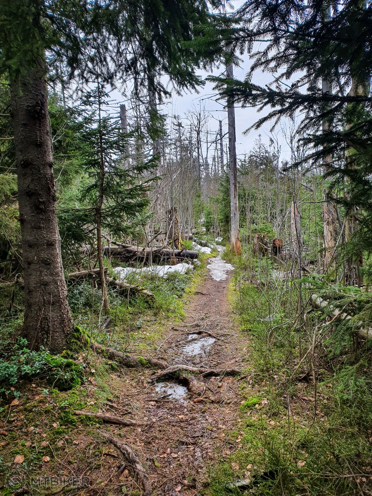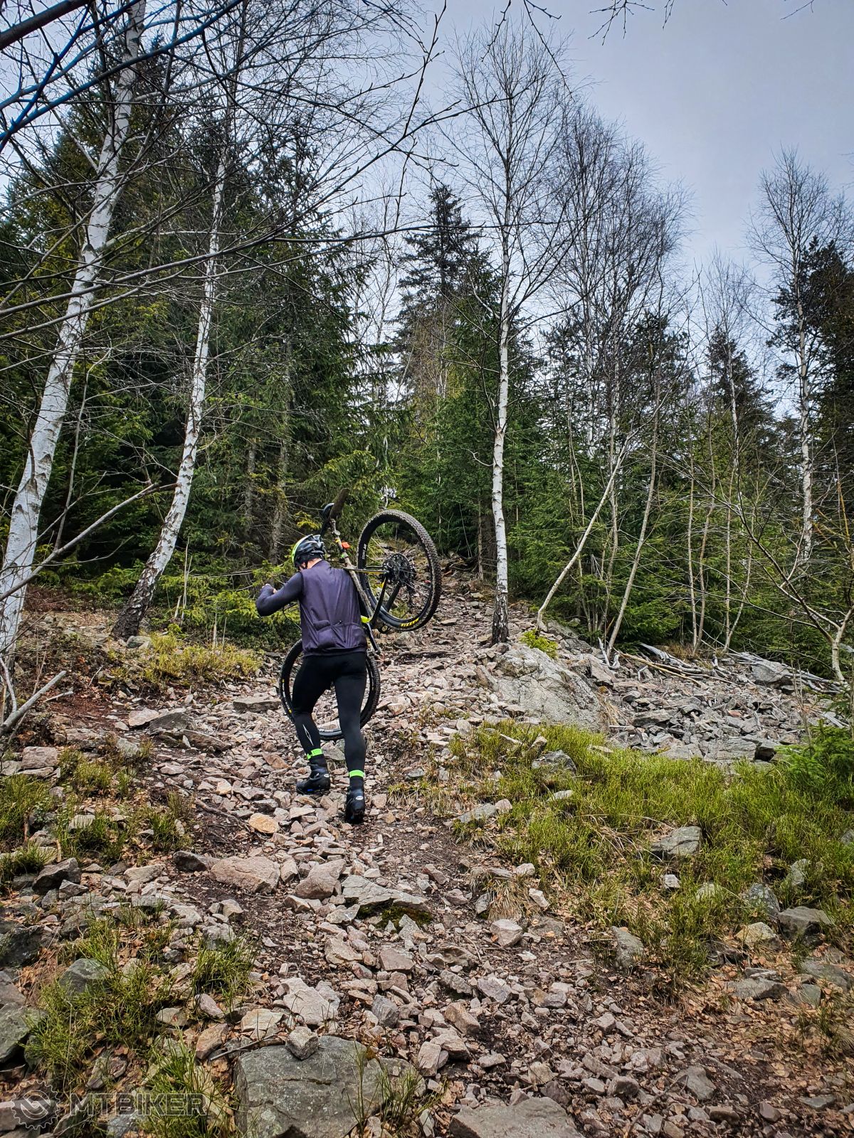 Dlhý asflatový presun do Širokého mi veľmi nevonial, tam stretko s parťákom a už odtiaľ tiahlým stúpaním na horský priesmyk Braniska, na Chvala Bohu. Kúsok ďalej je ponor potoka do skaly, resp. Ponor do Diablovej diery. Pozreli sme a šľapali ďalej na sedlo pod Smrekovicou. Odtiaľ už enduro sekcia aj s bajkmi na pleciach. Hore sa výhľad nekonal keďže počko všelijaké. Tak naspäť dole do sedla a svaznicami sme nabrali smer na druhý vrch dnešneho vyjazdu, Patria. Odtiaľ miestami rockgardenový zjazd až do Širokého a asfaltový presun nazad do SB.