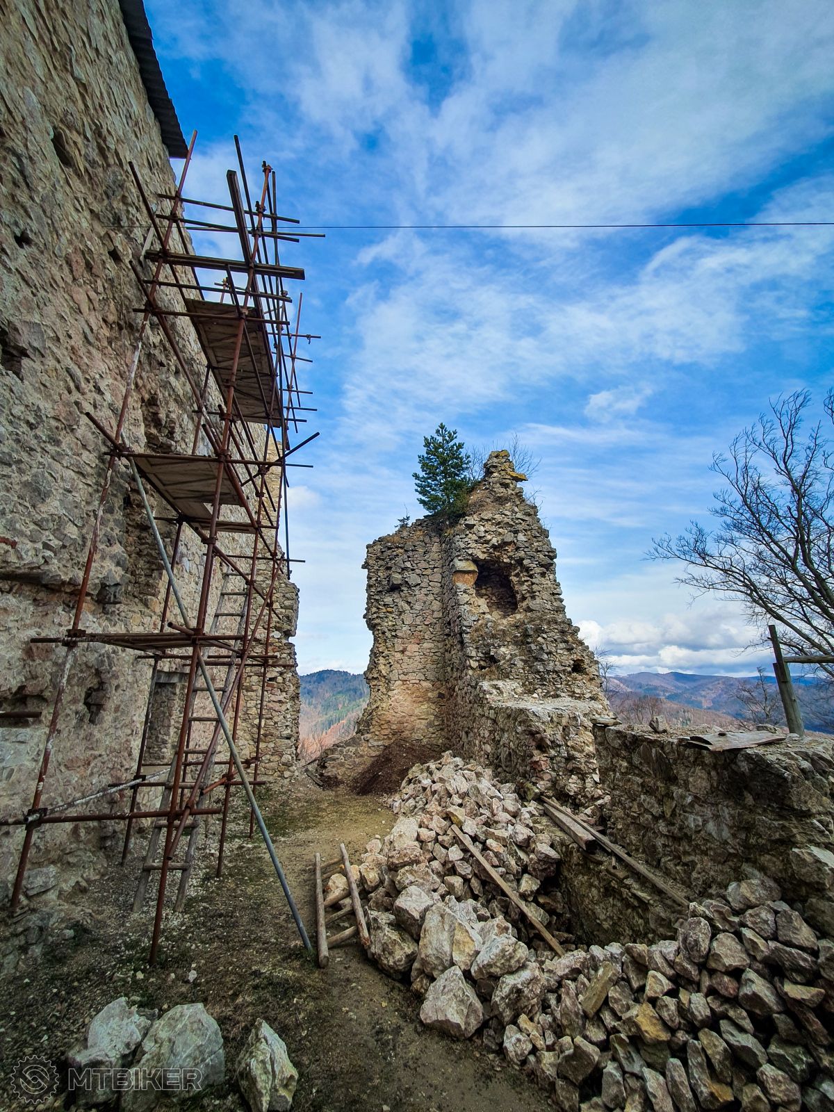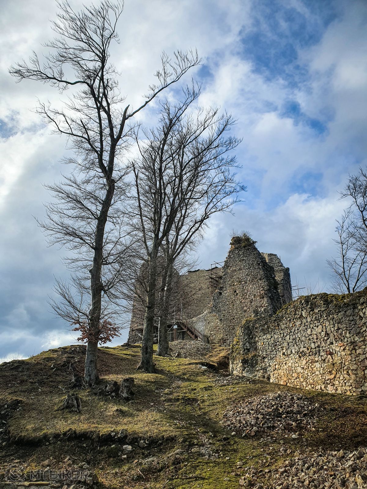 A čo dnes? Tak výlet na Hanigovský hrad. No okej si hovorím, už keď mám bajk zaľapaný z piatku tak dnes ho dokatujem v tienistých zvažniciach na Čergove. Nudný presun asfaltom až do obce Hanigovce a za obcou už pociťujem prvé dotyky s fajnou uschnutou lúčnou cestou, si vravím fajne, nezačapem še. ? Ďalej výšľapom sa povrch zmenil na kamenistý výšľap až po cestu vysypanú štrkom, ešte furt som čistý. Blatisto začalo až na lúke pod hradom, kde mi kolesá obalilo pekné žlto-červené blato a už to šlo len po mokrej lúke kde ako tak kolesa obmylo, ale šúchalo to a reťaz plakala. Tak som došiel na hrad a pýtal sa prečo som si to urobil. ? Pozrel som hrad a už som sa pustil do zjazdu zblaceným lesom až som zošiel pri pútnickom mieste v Ľutine a asfaltkou už domov, do SB. Dneska ceplo, ale veterno.