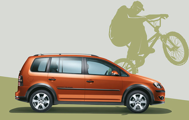 Touran Cross je ako Roomster Scout. Zídeš mimo asfalt, opadnú plasty a máš obyčajný Roomster. Nič v zlom, sranda musí byť. mar_tin: Nie, na šírku má len niečo cez 1.8m. Ale tá výška...