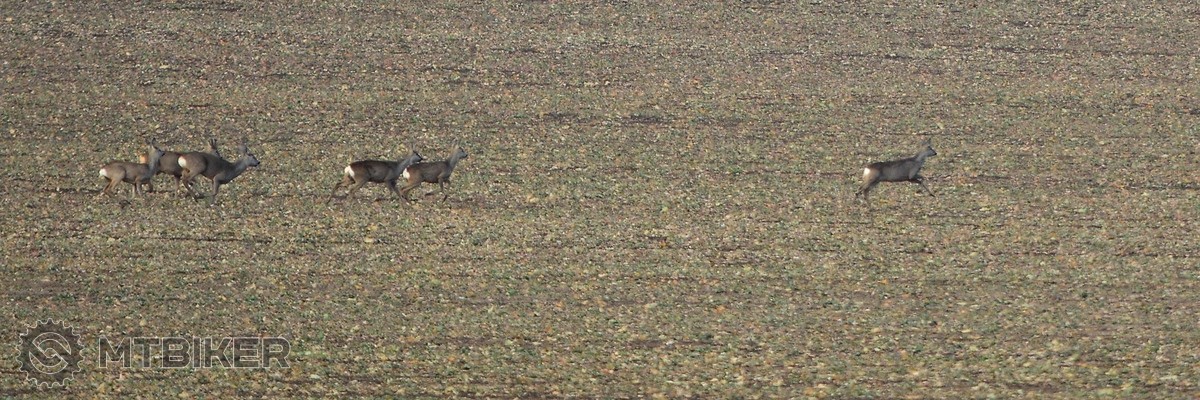 Nedavno som zazil ohromnu vec. Boli sme na vyjazde na Havrane pri Piestanoch (smer 3 Obrazky), mierny zjazdik po lesnej cesticke a zrazu len zozadu pocujem praskot listia tiahnuci sa dopredu asi 15 m od cesty. Myslel som, ze spolubiker iduci za mnou zvolil novu skratku... Zastal som, cakam, pozeram a asi 10 m pred nami si to sekli cez chodnik 2 jeleniska a 1 srna. Kua ale dupali, az strach (uz sa aj stmievalo). Kebyze nezastanem, tak som sa mohol vozit v jelenich parohoch : D