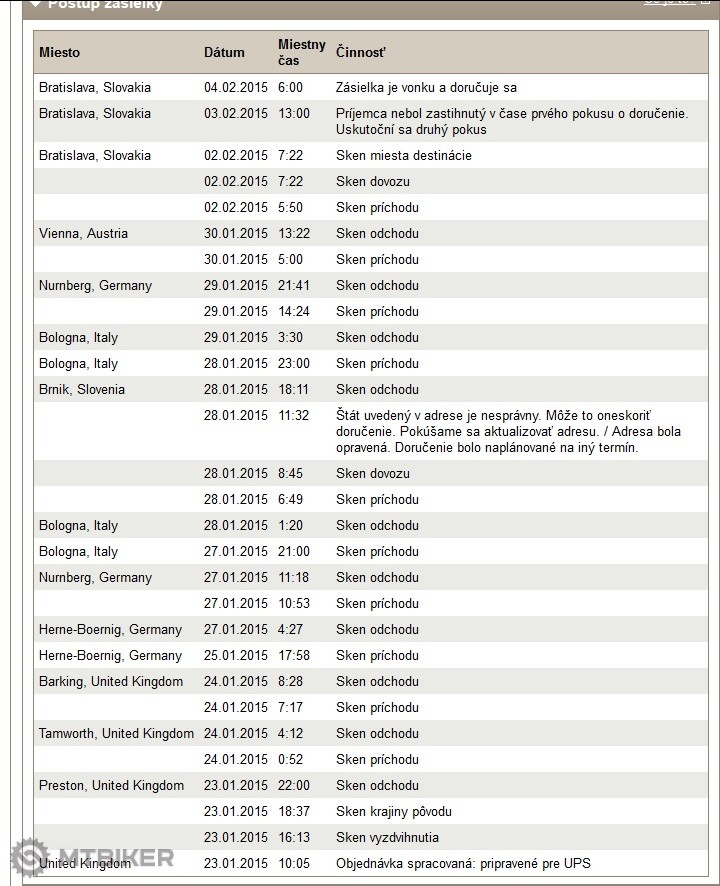 Mne posielali z Bike-discount v piatok a vcera to prislo. Objednavku rozdelili na dve krabice. Bike isiel DHL+Slovenska posta a ostatne veci DPD. Podla sledovania zasielok s tym cez vikend nic nerobili, stalo to v DE.