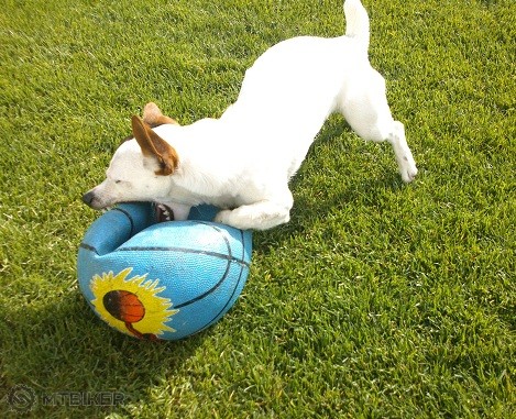 ma specialnu plastovu loptu pre psov co rozkusavaju lopty, ale ta je strasne tvrda tak na vybitie zubov a az tak ho nebavi samozrejme