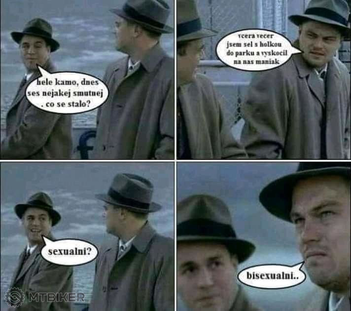 Já tomu vůbec nerozumím". Jeden chlap na to: "Jo já se v tom