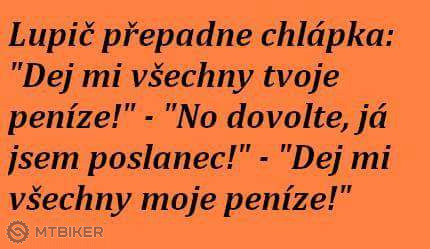 chcete. No tak jsem si vzal to kolo" Na to ten druhý: "No to jsi udělal