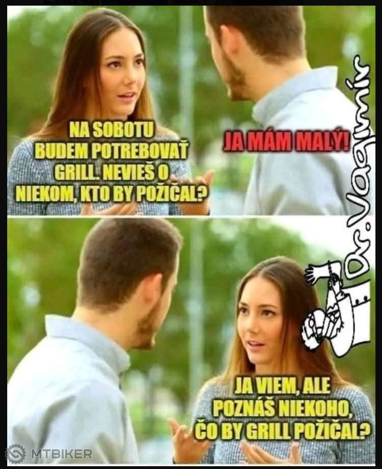 chcete. No tak jsem si vzal to kolo" Na to ten druhý: "No to jsi udělal