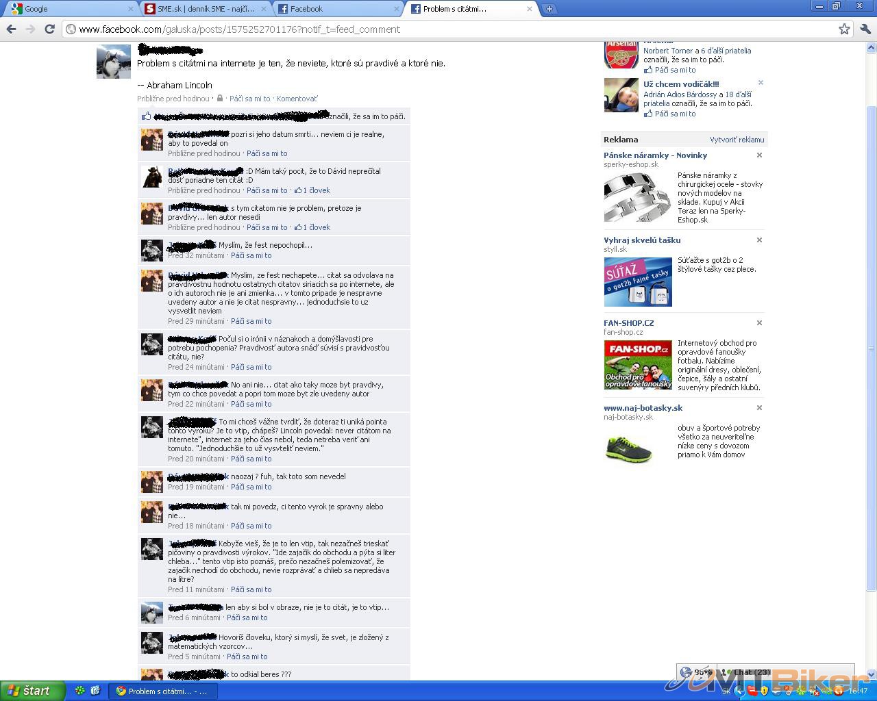 Já tomu vůbec nerozumím". Jeden chlap na to: "Jo já se v tom