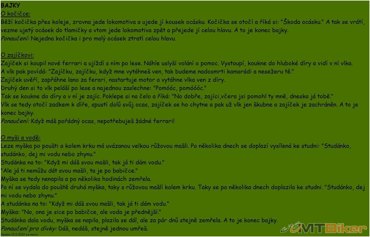 chcete. No tak jsem si vzal to kolo" Na to ten druhý: "No to jsi udělal
