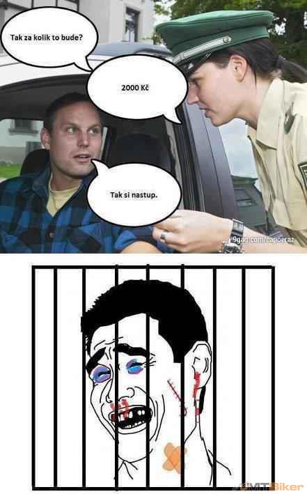 A policajt kaže: ta krstny by mal znac,že bicyglik muši mac predny blatnik, zadný blatnik, švetelko i brinčok.