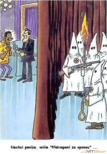 Já tomu vůbec nerozumím". Jeden chlap na to: "Jo já se v tom