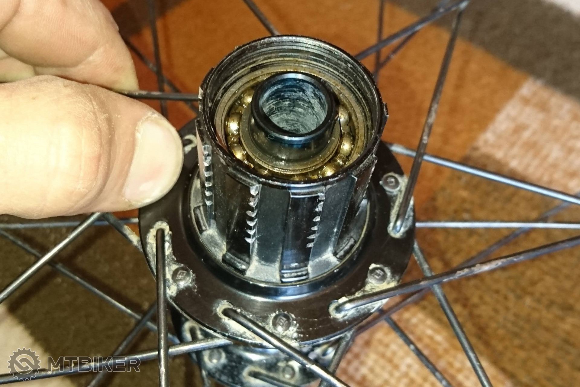 Mám podobný problém. Neviem dať dole orech. Koleso je Syncros XR2,5 z 2015r, náboj je tiež pôvodný Syncros/DT Swiss 12/142. Orech na jedno pretočenie ťukne 24x. Čo to je za typ netuším. Dal som dole akurát zátky, pod nimi sú hneď ložiská. Z jedného som dal dole prachovku, lebo je zablokované, bol som zvedavý koľko je v ňom bordelu. Oska je zvnútra hladká. Nieje sa čoho chytiť. Podľa videí, by mal ísť orech rukou stiahnuť, ale ani sa nepohne. Skúšal som už všetko možné, aj ho upnúť do zveráka a trhnúť, ale nič, zdvihol som ten 20kg zverák!